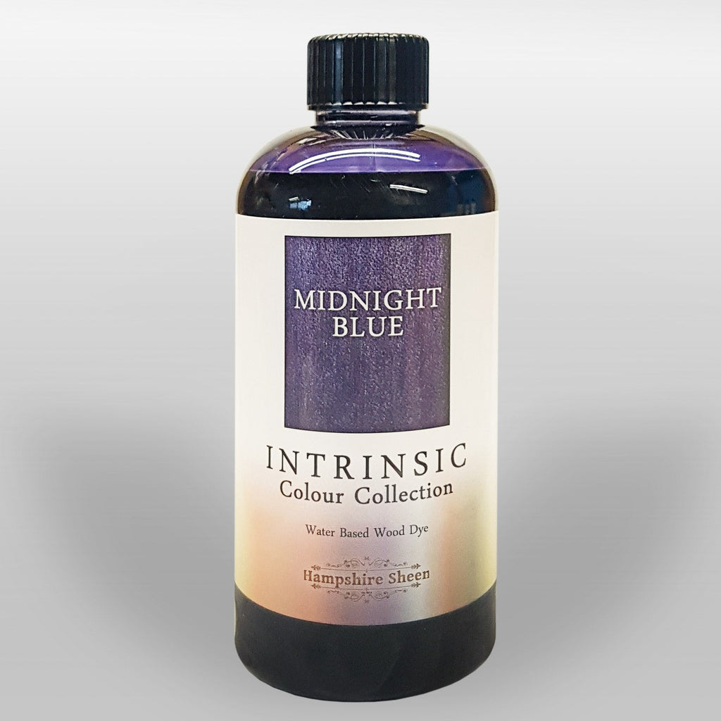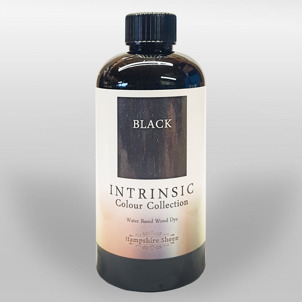 Hampshire Sheen Intrinsic colours are water based, non-flammable, and environmentally friendly. Being water based they afford you a longer working time than alcohol based stains and dyes. They sink deeply into the wood and preserve the appearance of the figure in the wood, releasing the hidden subtleties and enhancing chatoyance. Apply more than one coat of dye to build up sumptuous depth of colour and atmosphere, and add a black or earth undercoat for an even more dramatic effect.