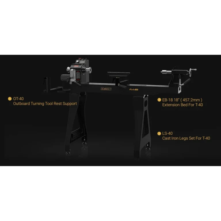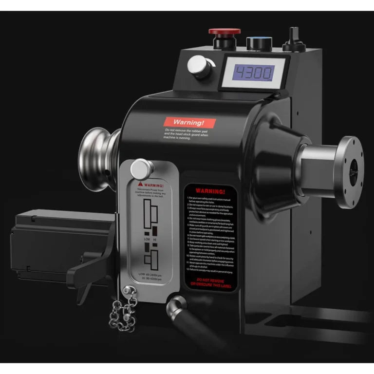 The T-40 has been designed on the scale of a large lathe in regards to casting size, power and controls. The T-40 incorporates an Industrial Servo Motor, commonly used on metal working lathes for its powerful torque, which allows the T-40 huge torque at low speeds. The spindle speed is constantly monitored with instant response to increase or lower the power output.