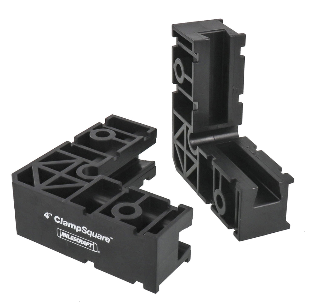 The Milescraft 4" ClampSquares are an excellent choice for squaring corners in woodworking assembly and gluing applications. These ClampSquares are sturdy and lightweight, making them simple to use. Unlike metal squares, these clamp squares will not damage your workpieces. 90° angles are a woodworking need, making these the ideal addition. ClampSquares can be utilized in both interior and exterior corners. The 4" squares are suitable for small-scale construction projects such as dollhouses and shelving.