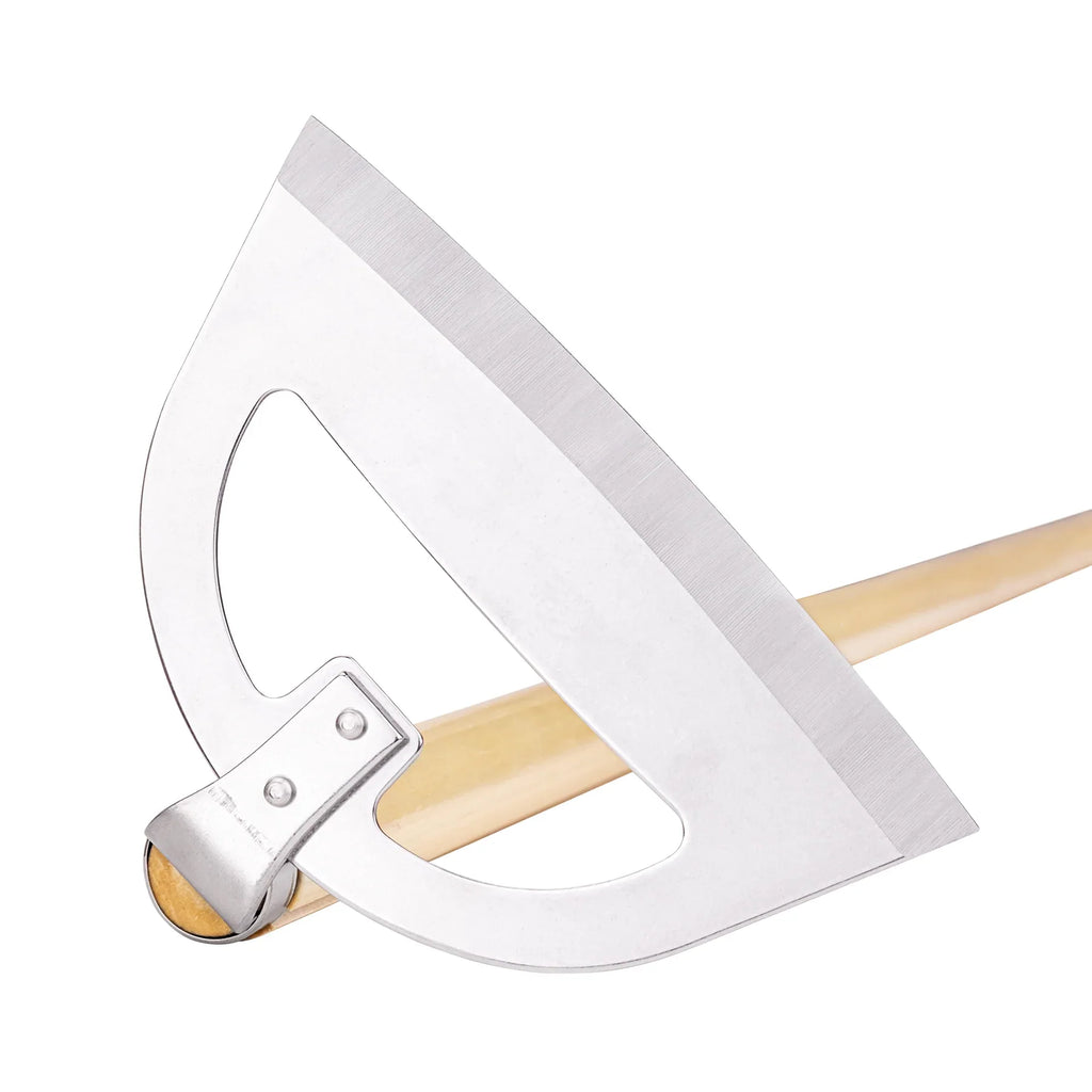 - Efficient design with a long wooden handle and sharpness of the Japanese stainless steel blade is highly effective in cutting through weeds, grass, soil, and more