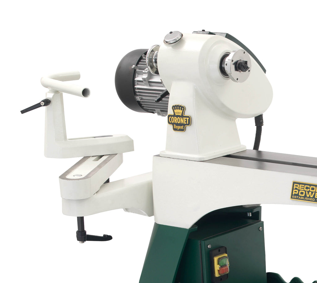 The cast iron outrigger for the Coronet Envoy and Coronet Regent allows for the full capacity of the lathe to be used when turning bowls with the head swivelled.