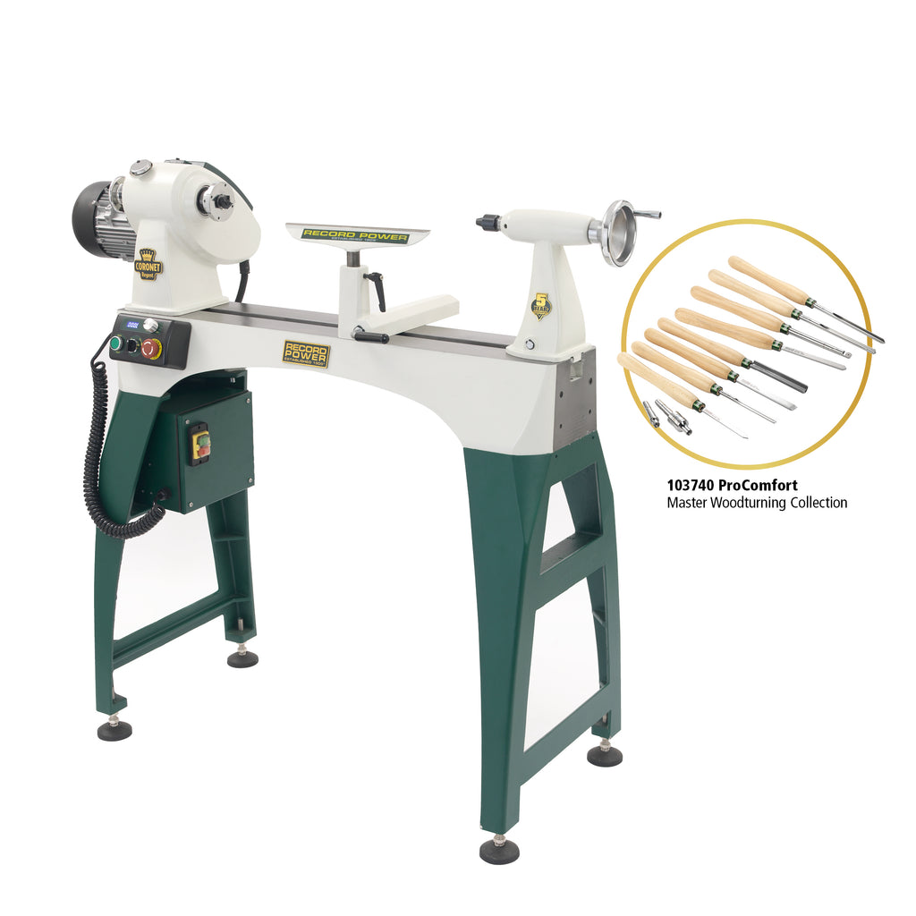 The Regent is the largest lathe in the exclusive range of Coronet lathes from Record Power and is ideal for the woodturner who regularly needs the power, stability and capacities necessary for very large scale work. It is supported by large and heavy integral cast iron legs to give ample protection from vibration while turning out of balance timbers. The overall heavy-duty construction of the machine, along with the finely engineered and machined components make this lathe a pleasure to use.