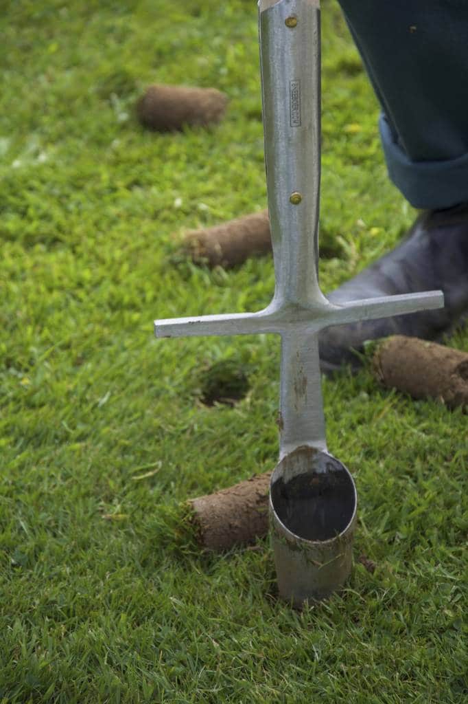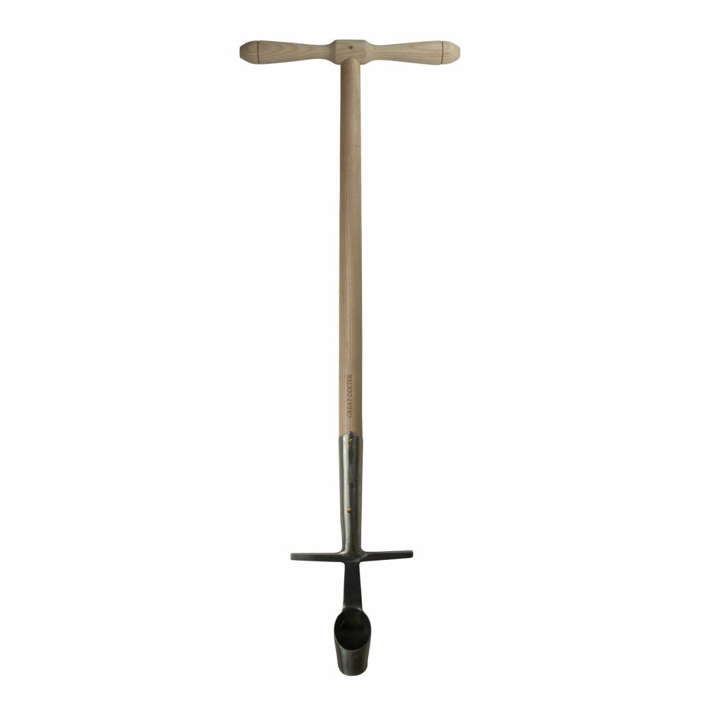 Modelled on Nathaniel Lloyd’s historic bulb planter, this tool has the advantages in balance, weight and angles to supersede any other tool for this job on the market. It enables you to walk through and take plugs out randomly, allowing for more naturalistic plantings. The wide cross handle allows you to drive the head into the turf with ease and the tapered head means that when it goes into the soil, the plug is pushed out effectively each time. This is a solid, well-built tool that makes bulb planting in turf an enjoyable task. It has all the beauty, sophistication and ergonomics of an old tool. The bulb planter features a cross at the bottom which is used as a step for right and left handed users.