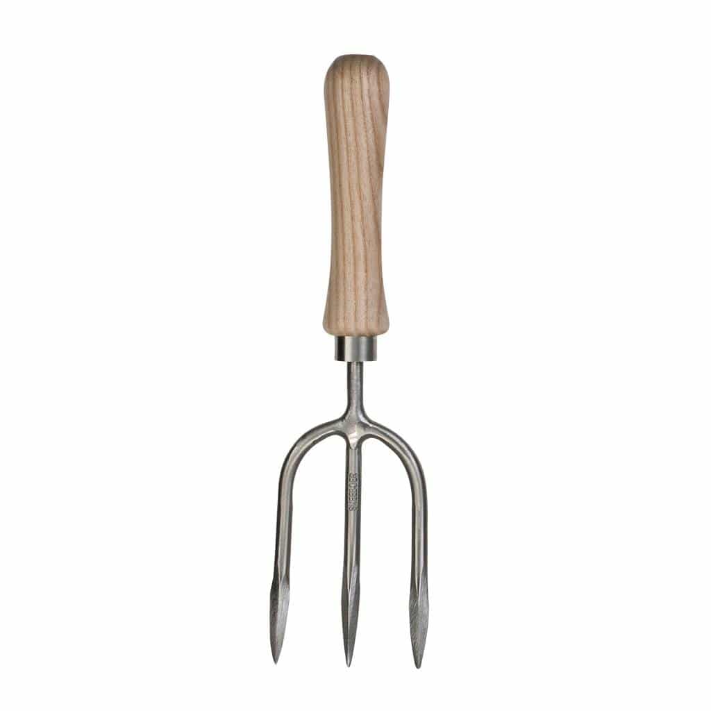 The hand weeding fork is great for getting under weeds and loosening them with their roots from the soil and, for removing plants from pots or soil without damaging the roots. The stainless steel tines are strong enough to dig and cultivate soils of all types and conditions. The clever design of the hand weeding fork ensures that the tool is sturdy, balanced and ergonomically to use. Compared to the weeding fork, the hand weeding fork has completely round tines which are forged into a point at the end.